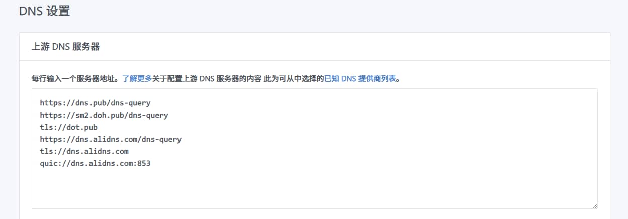 2.DNS设置:在DNS设置中,可以配置上游DNS服务器,以优化解析速度和过滤效果。建议填写DOH服务器: