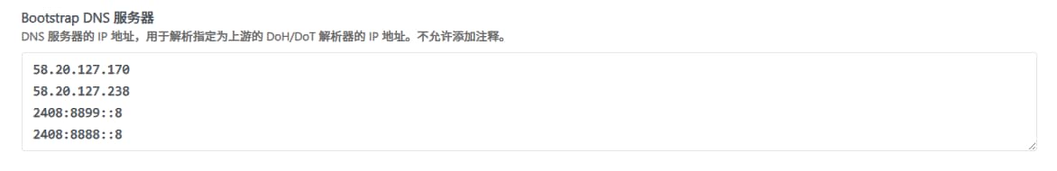 Bootstrap DNS 服务器建议填写本地运营商的DNS,速度是最快的: